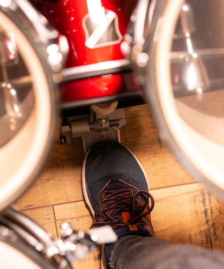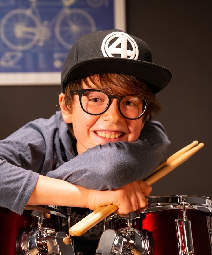 Matching the drum sizes, the Focus Junior set also includes a compact set of hardware. This lets you mount all the instruments, without having to buy anything extra. The stands are lightweight but stable. Older children can also play safely sitting on the double-braced stool. The pedals are adapted to smaller feet and are easy to press down, with little resistance.