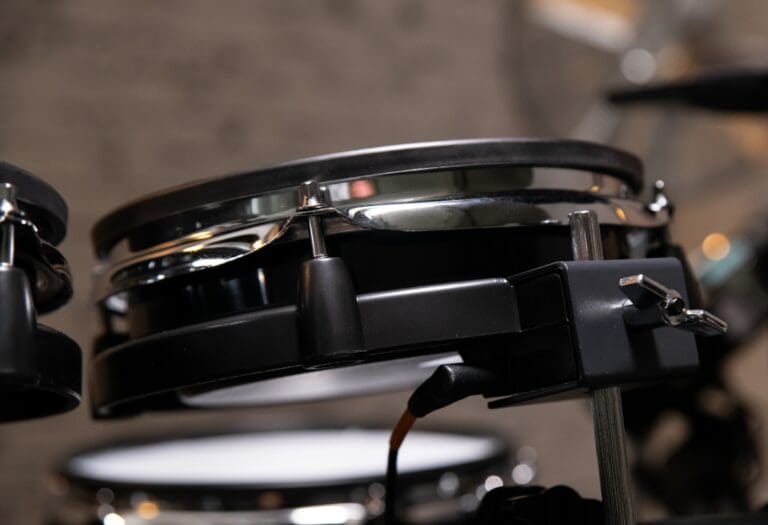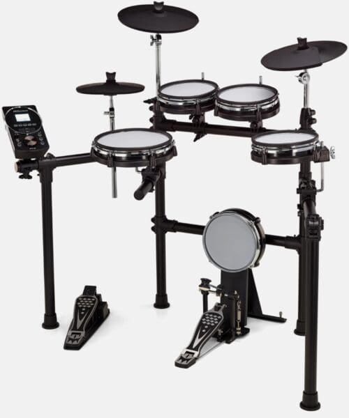 An electronic drum set should ideally feel just like an acoustic kit, and mesh heads are the best way to achieve this. The mesh heads are more flexible and easier to play on than hard rubber pads, while producing much less noise. The low noise level is a great advantage on the bass drum pad, which is played using a standard pedal. This makes for an easy transition if you use an acoustic kit for your drum lessons or at school.